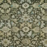 This 8-foot artichoke green ivory and gold round floral washable indoor outdoor area rug, is a great way to add warmth to a room. This geometric round shaped rug features a floral pattern in artichoke green, ivory, and gold that combines a good looking print with a unique and updated shape. The mix of shape, color, and design gives this rug refreshing visual interest. Ideal for outdoor spaces or high traffic areas with kids and pets, this rug is made from heavy duty polyester that is stain resistant to help repel water, dirt, and stains. Makes a great way to dress up your patio, porch, or poolside, but also works well as a durable and easy to maintain option in the kitchen, family room, or mudroom. 96-inch h x 96-inch w x 0.19-inch d.