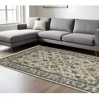 8' Beige And Blue Abstract Washable Round Rug With UV Protection