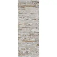 8' Beige and Brown Oriental Power Loom Distressed Runner Rug With Fringe