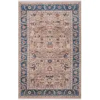 8' Beige And Charcoal Floral Distressed Runner Rug