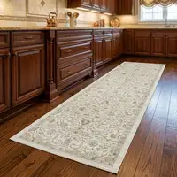 8' Beige And Green Abstract Runner Rug