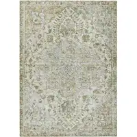 8' Beige And Ivory Round Ogee Washable Indoor Outdoor Area Rug