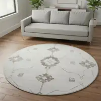 8' Beige And Ivory Striped Washable Round Rug With UV Protection