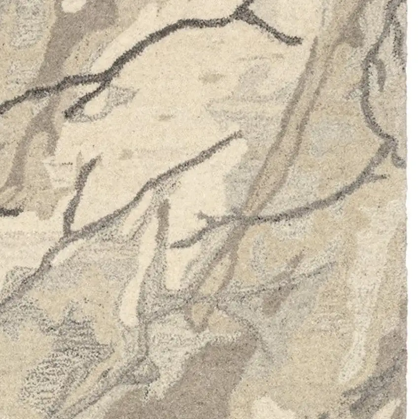 8' Beige And Ivory Wool Abstract Hand Tufted Runner Rug