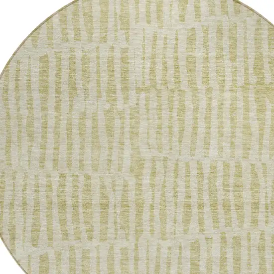8' Beige And Tan Round Striped Washable Indoor Outdoor Area Rug