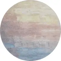 8' Beige And Taupe Oriental Washable Round Rug With UV Protection