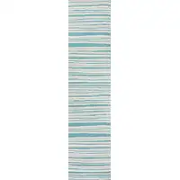 8' Beige Grey Gold Blue Rust And Teal Abstract Power Loom Runner Rug With Fringe