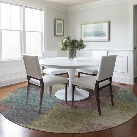 8' Beige Mauve And Brown Round Abstract Washable Indoor Outdoor Area Rug