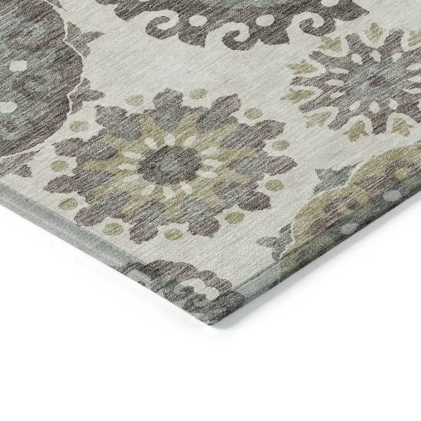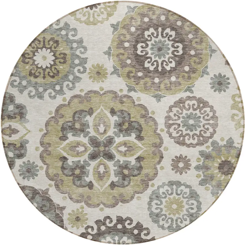 Add some artistry to your room with this 8-foot beige taupe and brown round floral medallion washable indoor outdoor area rug. This geometric round shaped rug features a floral medallion pattern in beige, taupe, and brown that combines a good looking print with a unique and updated shape. The mix of shape, color, and design gives this rug refreshing visual interest. Ideal for outdoor spaces or high traffic areas with kids and pets, this rug is made from heavy duty polyester that is stain resistant to help repel water, dirt, and stains. Versatile in use, durable, and easy to maintain, this rug is an ideal solution to add a decorative and inviting touch to your indoor or outdoor space. 96-inch h x 96-inch w x 0.19-inch d.