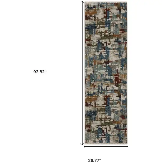 8' Beige Teal And Brown Abstract Runner Rug With Fringe