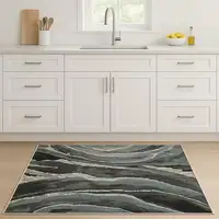 8' Black And Beige Floral Indoor Outdoor Runner Rug
