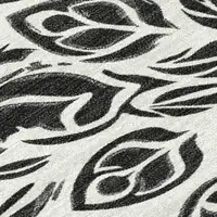 8' Black And Charcoal Round Geometric Washable Indoor Outdoor Area Rug