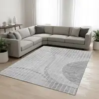 8' Black And Ivory Abstract Washable Round Rug With UV Protection
