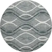 8' Black And Ivory Abstract Washable Round Rug With UV Protection