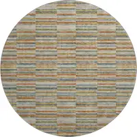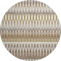 8' Black And Ivory Floral Washable Round Rug With UV Protection
