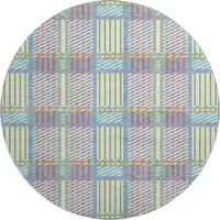 8' Black And Ivory Geometric Washable Round Rug With UV Protection