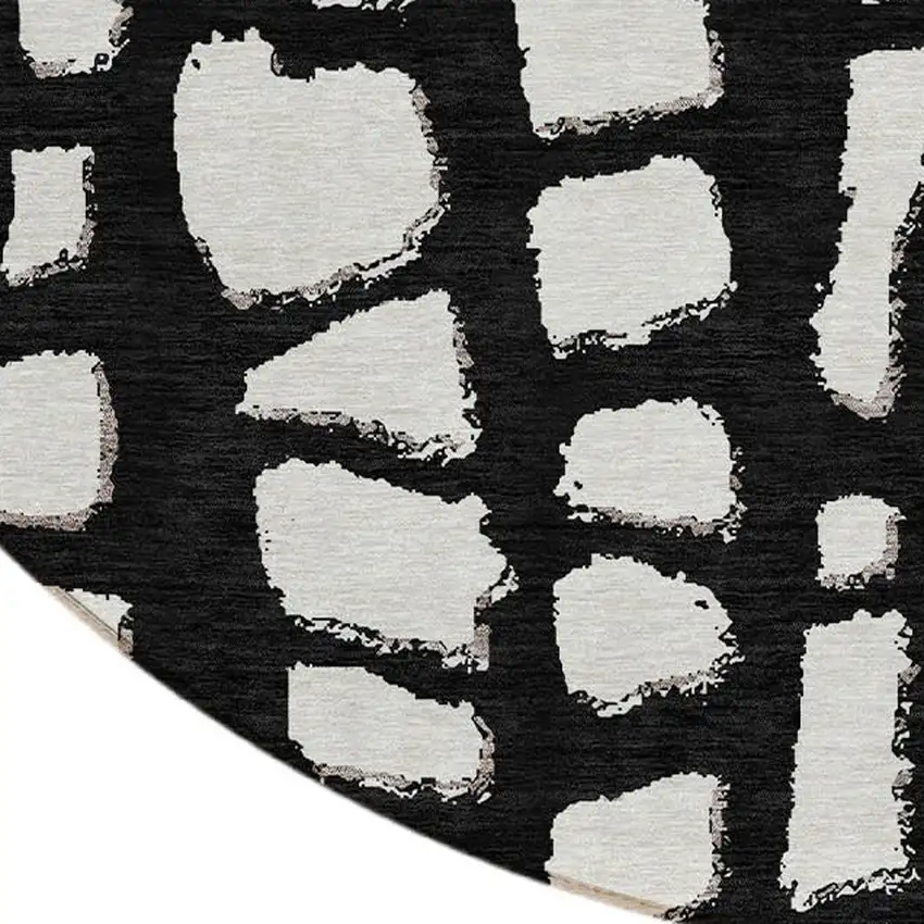 8' Black And Ivory Round Abstract Washable Indoor Outdoor Area Rug