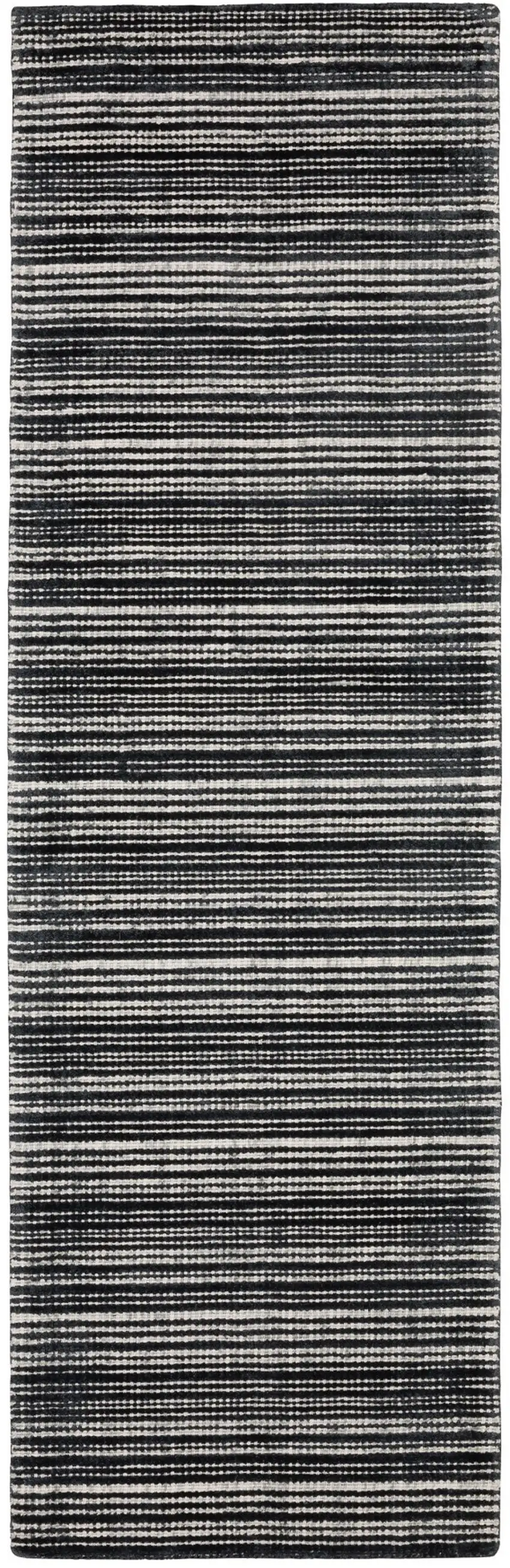 8' Black And Ivory Striped Hand Tufted Runner Rug