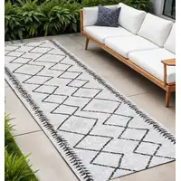 8' Black And Khaki Geometric Indoor Outdoor Runner Rug