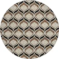 8' Black Gray And Ivory Round Oriental Washable Indoor Outdoor Area Rug