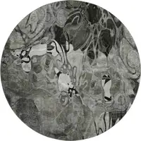 8' Black Ivory And Gray Abstract Washable Round Rug With UV Protection