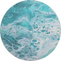 8' Black Ivory And Gray Abstract Washable Round Rug With UV Protection