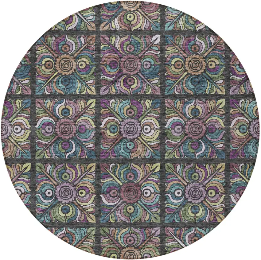 This 8-foot black purple and teal blue round medallion washable indoor outdoor area rug, is a great way to add warmth to a room. This geometric round shaped rug features a medallion pattern in black, purple, and teal blue that combines a good looking print with a unique and updated shape. The mix of shape, color, and design gives this rug refreshing visual interest. The coloration of this rug infuses an updated and modern vibe into your space. Ideal for outdoor spaces or high traffic areas with kids and pets, this rug is made from heavy duty polyester that is stain resistant to help repel water, dirt, and stains. Makes a great way to dress up your patio, porch, or poolside, but also works well as a durable and easy to maintain option in the kitchen, family room, or mudroom. 96-inch h x 96-inch w x 0.19-inch d.