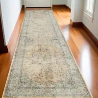 8' Blue Abstract Power Loom Non Skid Runner Rug