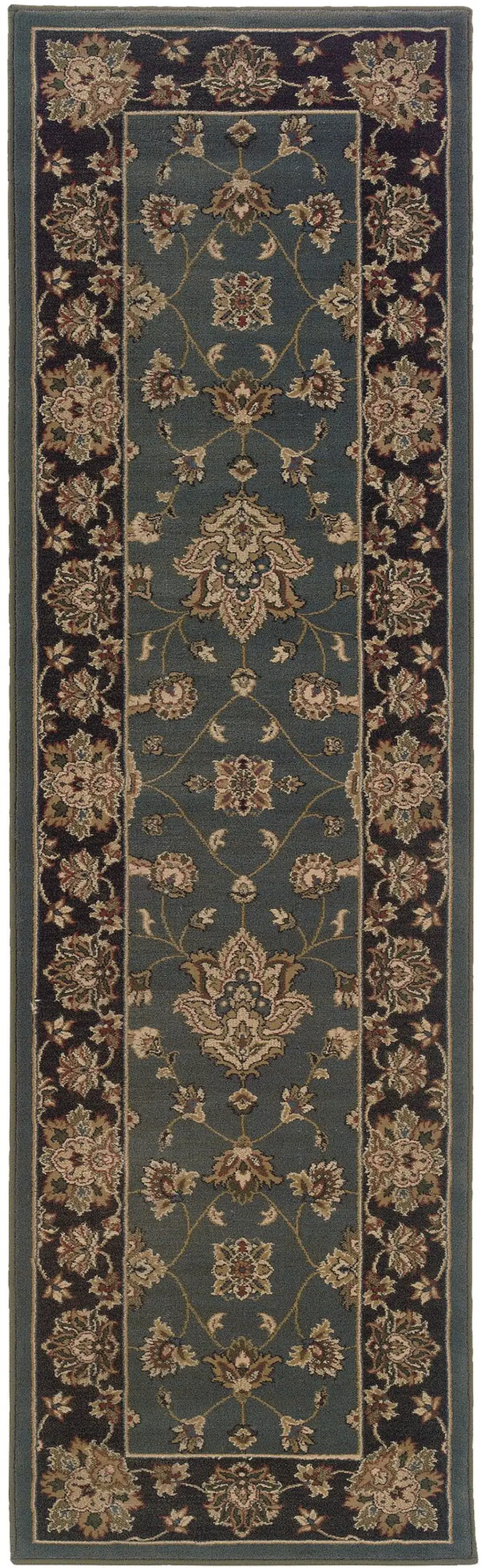 8' Blue And Black Floral Runner Rug