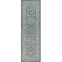 8' Blue And Cream Floral Indoor Outdoor Runner Rug