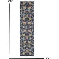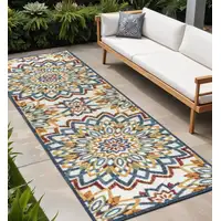 8' Blue And Cream Medallion Indoor Outdoor Runner Rug