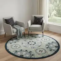 8' Blue And Gray Oriental Washable Round Rug With UV Protection