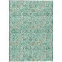 8' Blue And Gray Round Damask Washable Indoor Outdoor Area Rug