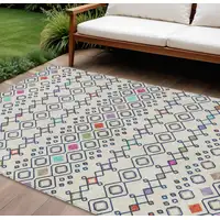 8' Blue And Gray Round Geometric Washable Indoor Outdoor Area Rug