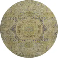 8' Blue And Ivory Chevron Washable Round Rug With UV Protection