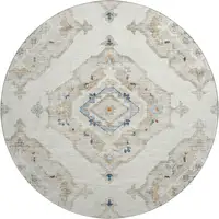 8' Blue And Ivory Damask Washable Round Rug With UV Protection