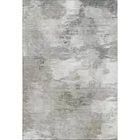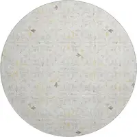 8' Blue And Ivory Floral Medallion Washable Round Rug With UV Protection