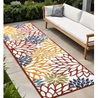 8' Blue And Ivory Geometric Indoor Outdoor Runner Rug