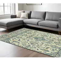 8' Blue And Ivory Geometric Washable Round Rug With UV Protection