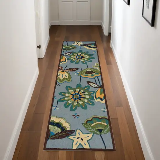 Add some artistry to your room with this 8-foot blue botanical leaves hand carved handmade runner rug. Ideal for spaces with kids and pets, this rug is stain resistant to help repel dirt and spilled liquids. Crafted by skilled artisans, this hand carved rug is genuine and unique. No two will be exactly alike. Built to last, this rug crafted from polyester fibers is known for its durability and long lasting appeal. Rugs are a great way to showcase your style, hide imperfections, warm your home and reduce noise. This rectangular shaped rug features a abstract design that will add a functional and decorative accent to your space. This contemporary styled runners makes a great accent for the hallway, in front of cabinets, in the laundry room, or any other space you need a narrow and long rug. 27-inch h x 96-inch w x 0.25-inch d