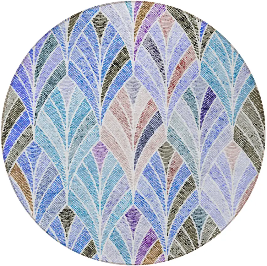 8' Blue Brown And Purple Round Geometric Washable Indoor Outdoor Area Rug
