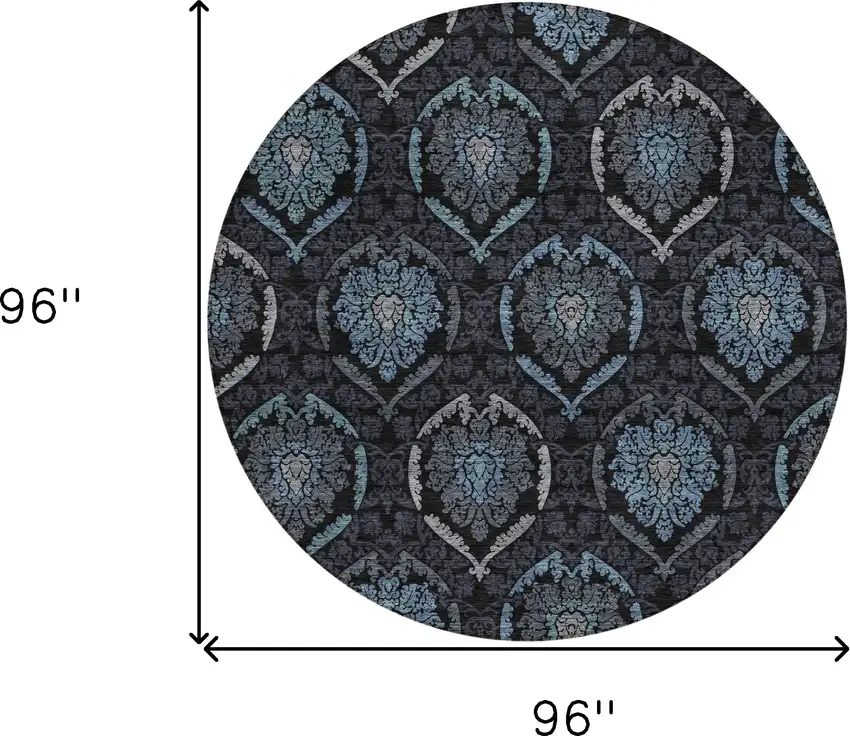 8' Blue Charcoal And Gray Round Medallion Washable Indoor Outdoor Area Rug