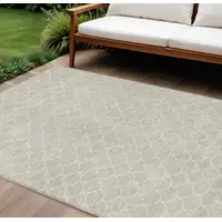8' Blue Gray And Ivory Round Geometric Washable Indoor Outdoor Area Rug