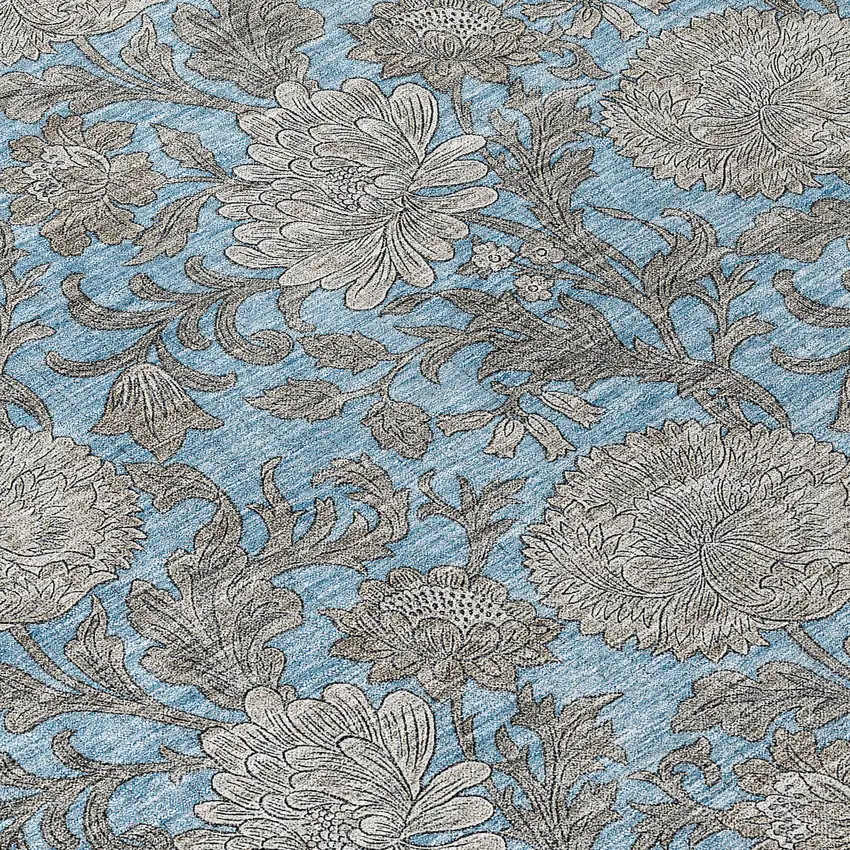 Set an inviting tone in your space with this 8-foot blue gray and silver round floral washable indoor outdoor area rug. This geometric round shaped rug features a floral pattern in blue, gray, and silver that combines a good looking print with a unique and updated shape. The mix of shape, color, and design gives this rug refreshing visual interest. Ideal for outdoor spaces or high traffic areas with kids and pets, this rug is made from heavy duty polyester that is stain resistant to help repel water, dirt, and stains. Makes a great way to dress up your patio, porch, or poolside, but also works well as a durable and easy to maintain option in the kitchen, family room, or mudroom. 96-inch h x 96-inch w x 0.19-inch d.