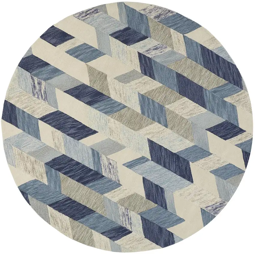8' Blue Ivory And Gray Round Wool Geometric Tufted Handmade Area Rug
