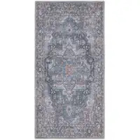 8' Blue Ivory And Gray Striped Washable Round Rug With UV Protection