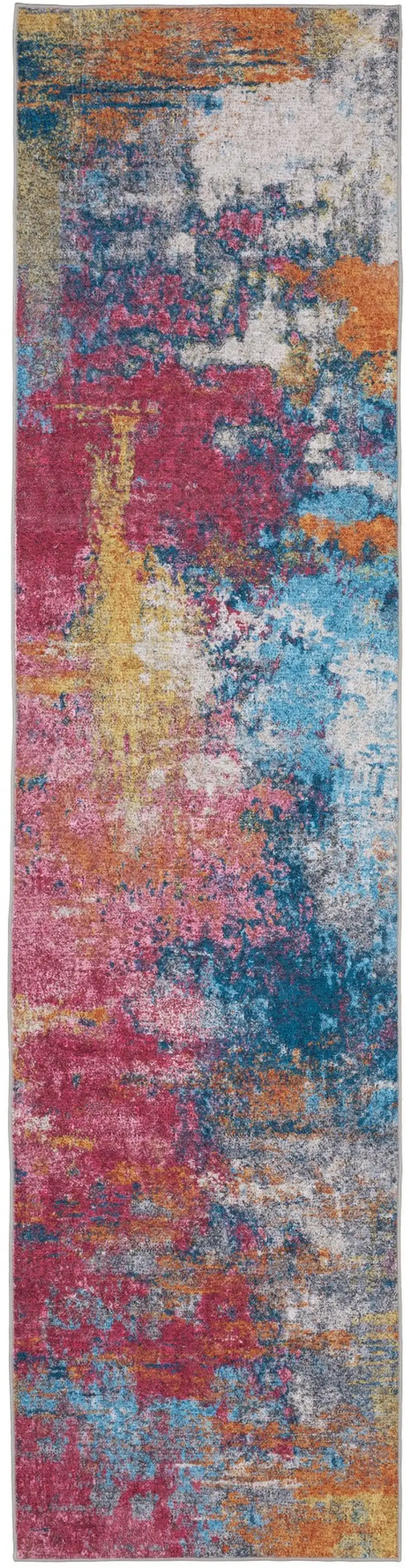 Add some artistry to your room with this 8-foot blue abstract non skid runner rug. This runner shaped rug features a abstract design in blue to give it visual interest. A classic shape marries with good looking design for your space ideal for spaces with kids and pets, this rug is stain resistant to help repel stains and spilled liquids. Area rugs help to give warmth and sense of home to your space. 24.02-inch H x 96.06-inch W x 0.12-inch D