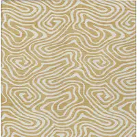 8' Blush Blue And Taupe Round Geometric Washable Indoor Outdoor Area Rug