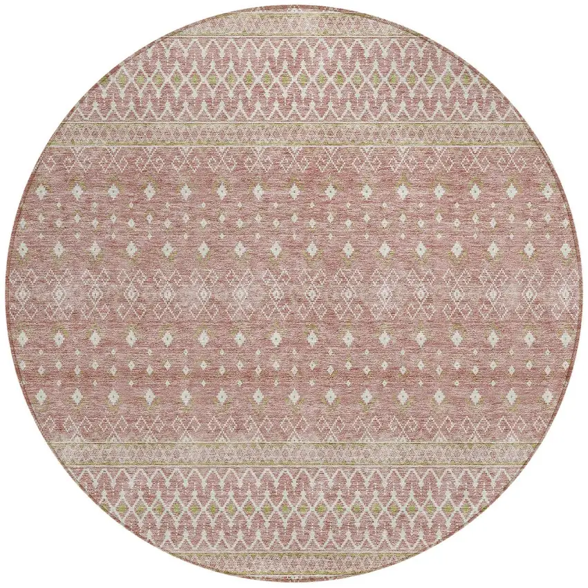 8' Blush Gold And Ivory Round Tribal Washable Indoor Outdoor Area Rug