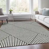 8' Blush Green And Ivory Ikat Washable Round Rug With UV Protection